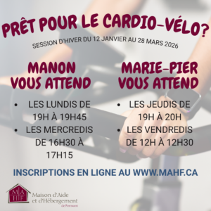 La session d’hiver du cardio-vélo se déroulera du 12 janvier au 28 mars 2026